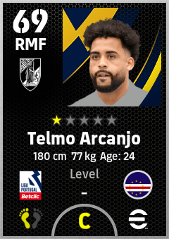 . Telmo Arcanjo is a Right Midfielder footballer from Cabo Verde who plays for Vitória Sc in eFootball 2026.