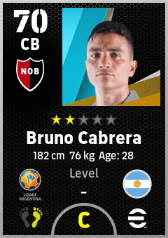 . Bruno Cabrera is a Center Back footballer from Argentina who plays for Rosario Rn in eFootball 2026.