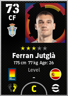 . Ferran Jutglà is a Center Forward footballer from Spain who plays for Vigo Ab in eFootball 2026.