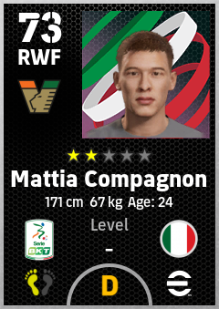 . Mattia Compagnon is a Right Wing Forward footballer from Italy who plays for Venezia Anv in eFootball 2026.