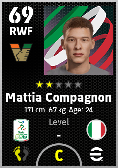 . Mattia Compagnon is a Right Wing Forward footballer from Italy who plays for Venezia Anv in eFootball 2026.