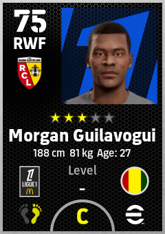 . Morgan Guilavogui is a Right Wing Forward footballer from Guinea who plays for Rc Lens in eFootball 2026.