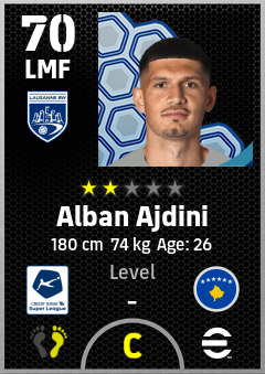. Alban Ajdini is a Left Midfielder footballer from Kosovo who plays for Lausanne Bw in eFootball 2026.