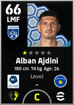 . Alban Ajdini is a Left Midfielder footballer from Kosovo who plays for Lausanne Bw in eFootball 2026.