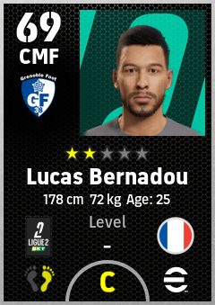 . Lucas Bernadou is a Center Midfielder footballer from France who plays for Grenoble Foot 38 in eFootball 2026.