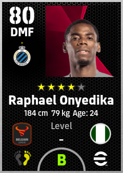 . Raphael Onyedika is a Defensive Midfielder footballer from Nigeria who plays for Brugge Bz in eFootball 2026.