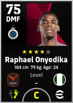 . Raphael Onyedika is a Defensive Midfielder footballer from Nigeria who plays for Brugge Bz in eFootball 2026.