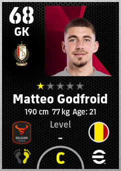 . Matteo Godfroid is a Goalkeeper footballer from Belgium who plays for Liège Rw in eFootball 2026.