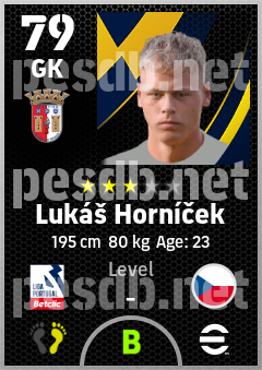 . Lukáš Horníček is a Goalkeeper footballer from Czechia who plays for Sporting Braga in eFootball 2026.