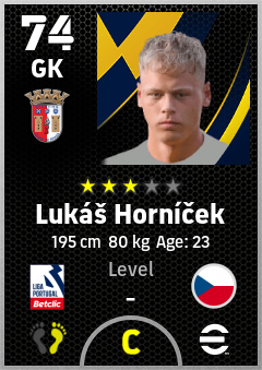 . Lukáš Horníček is a Goalkeeper footballer from Czechia who plays for Sporting Braga in eFootball 2026.