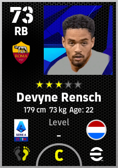 . Devyne Rensch is a Right Back footballer from Netherlands who plays for Roma Gr in eFootball 2026.