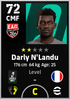 . Darly N'landu is a Center Midfielder footballer from France who plays for En Avant Guingamp in eFootball 2026.