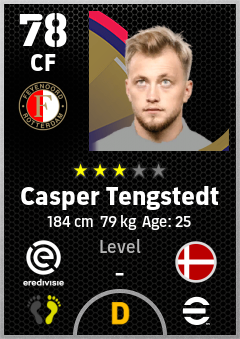 . Casper Tengstedt is a Center Forward footballer from Denmark who plays for Feyenoord in eFootball 2026.