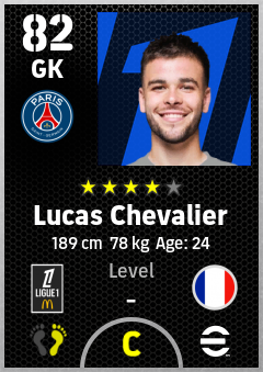 . Lucas Chevalier is a Goalkeeper footballer from France who plays for Paris Saint-Germain in eFootball 2026.