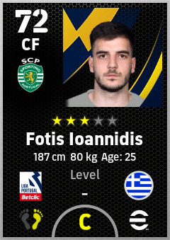 . Fotis Ioannidis is a Center Forward footballer from Greece who plays for Sporting Cp in eFootball 2026.