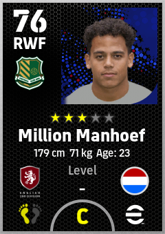 . Million Manhoef is a Right Wing Forward footballer from Netherlands who plays for Stoke Rw in eFootball 2026.