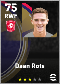 . Daan Rots is a Right Wing Forward footballer from Netherlands who plays for Fc Twente in eFootball 2026.
