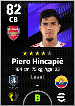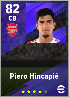 . Piero Hincapié is a Center Back footballer from Ecuador who plays for Arsenal Fc in eFootball 2026.