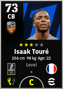 . Isaak Touré is a Center Back footballer from France who plays for Fc Lorient in eFootball 2026.