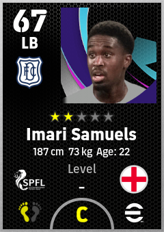 . Imari Samuels is a Left Back footballer from England who plays for Dundee Fc in eFootball 2026.