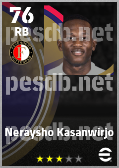 . Neraysho Kasanwirjo is a Right Back footballer from Netherlands who plays for Feyenoord in eFootball 2026.