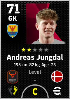 . Andreas Jungdal is a Goalkeeper footballer from Denmark who plays for Westerlo Gb in eFootball 2026.