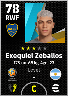 . Exequiel Zeballos is a Right Wing Forward footballer from Argentina who plays for Ca Boca Juniors in eFootball 2026.