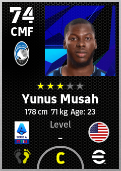 . Yunus Musah is a Center Midfielder footballer from United States who plays for Atalanta Bc in eFootball 2026.