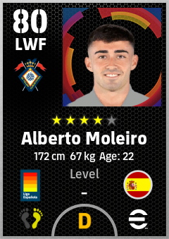. Alberto Moleiro is a Left Wing Forward footballer from Spain who plays for Villarreal A in eFootball 2026.