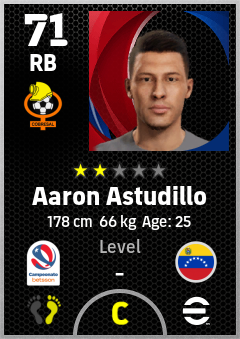 . Aaron Astudillo is a Right Back footballer from Venezuela who plays for El Salvador Bn in eFootball 2026.