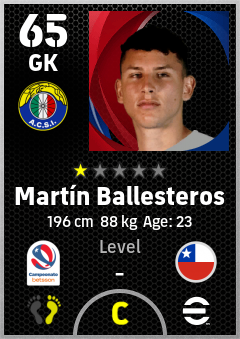 . Martín Ballesteros is a Goalkeeper footballer from Chile who plays for Santiago Vb in eFootball 2026.