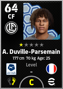 . A. Duville-Parsemain is a Center Forward footballer from France who plays for Lugano Sw in eFootball 2026.
