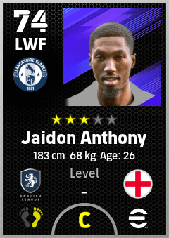 . Jaidon Anthony is a Left Wing Forward footballer from England who plays for Burnley Rb in eFootball 2026.