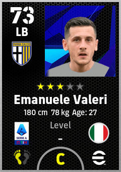 . Emanuele Valeri is a Left Back footballer from Italy who plays for Parma Calcio 1913 in eFootball 2026.