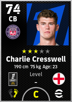 . Charlie Cresswell is a Center Back footballer from England who plays for Toulouse Fc in eFootball 2026.