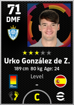 . Urko González De Z. is a Defensive Midfielder footballer from Spain who plays for Llobregat Ab in eFootball 2026.