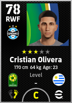 . Cristian Olivera is a Right Wing Forward footballer from Uruguay who plays for Grêmio Fbpa in eFootball 2026.