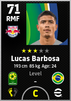 . Lucas Barbosa is a Right Midfielder footballer from Brazil who plays for Red Bull Bragantino in eFootball 2026.