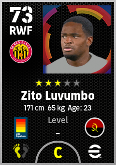 . Zito Luvumbo is a Right Wing Forward footballer from Angola who plays for Mallorca Rn in eFootball 2026.