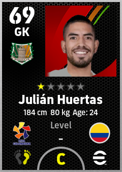 . Julián Huertas is a Goalkeeper footballer from Colombia who plays for Bogotá Vb in eFootball 2026.