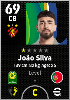 . João Silva is a Center Back footballer from Portugal who plays for Sport Recife in eFootball 2026.