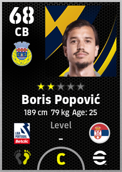 . Boris Popović is a Center Back footballer from Serbia who plays for Fc Arouca in eFootball 2026.