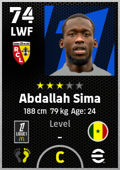 . Abdallah Sima is a Left Wing Forward footballer from Senegal who plays for Rc Lens in eFootball 2026.