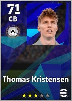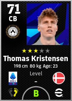 . Thomas Kristensen is a Center Back footballer from Denmark who plays for Udinese Calcio in eFootball 2026.