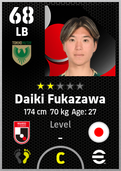 . Daiki Fukazawa is a Left Back footballer from Japan who plays for Tokyo Verdy in eFootball 2026.