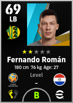 . Fernando Román is a Left Back footballer from Paraguay who plays for Mar Del Plata Va in eFootball 2026.