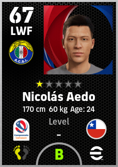 . Nicolás Aedo is a Left Wing Forward footballer from Chile who plays for Santiago Vb in eFootball 2026.