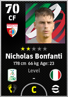. Nicholas Bonfanti is a Center Forward footballer from Italy who plays for Mantova Br in eFootball 2026.