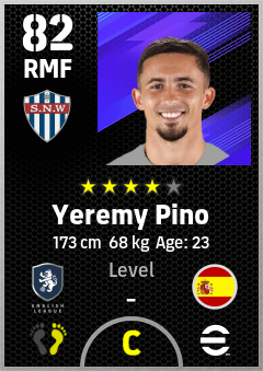 . Yeremy Pino is a Right Midfielder footballer from Spain who plays for Crystal Palace Rb in eFootball 2026.
