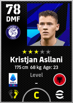 . Kristjan Asllani is a Defensive Midfielder footballer from Albania who plays for Torino Fc in eFootball 2026.